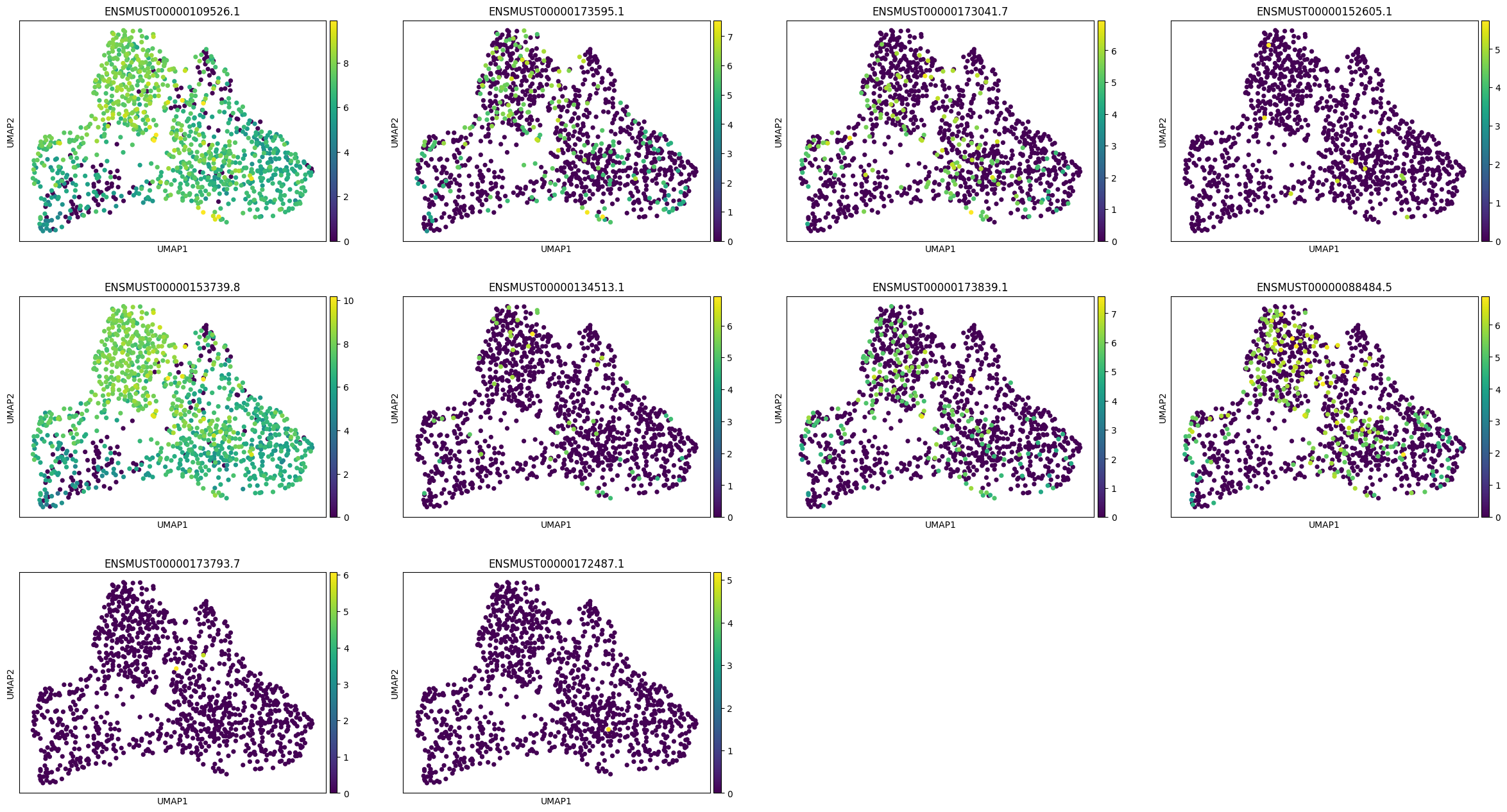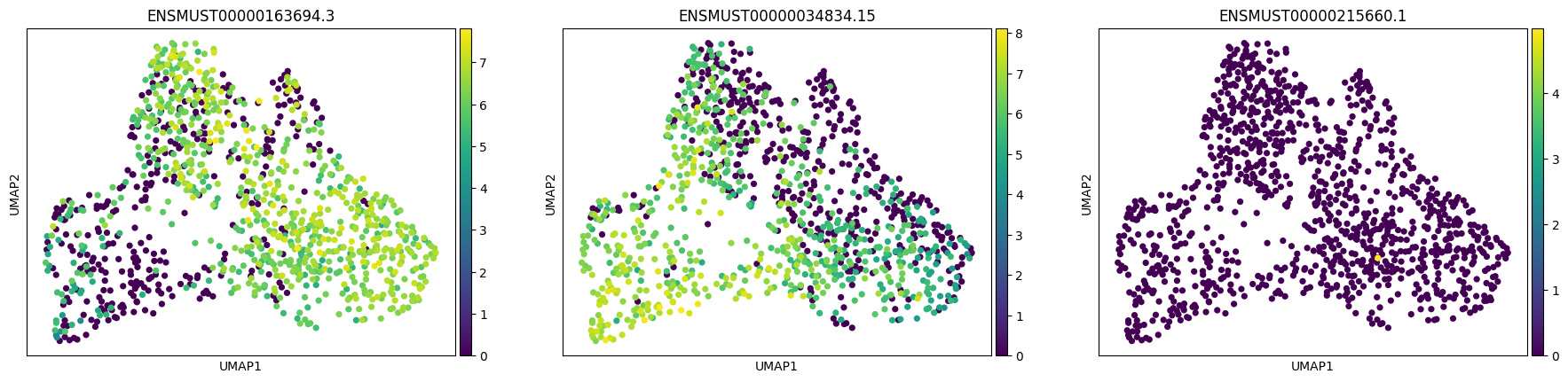 To focus on the top three most expressed isoforms in the dataset, we can filter and visualize them using the following approach. This allows us to concentrate on the most significant isoforms for further analysis or presentation, useful as some genes have a lot of isoforms and many are very lowly exspressed.