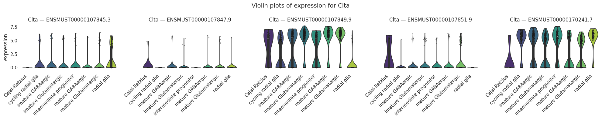 # sanity checkprint("\nAll CLTA isoforms still present:")display(sicelore_mouse_data.var.query("geneId == 'Clta'").head())